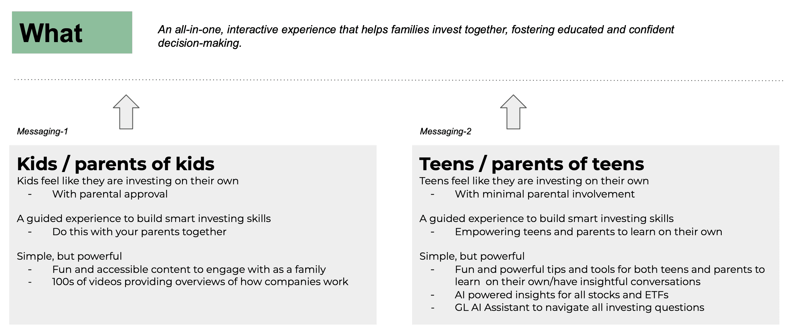 Our UX research suggested that the existing investing interface felt too individualistic or intimidating for the average user. We hypothesized that by shifting the value proposition from "personal trading" to "family-centric investing," we would lower the barrier to entry, driving both trade volume and Max plan upgrades.