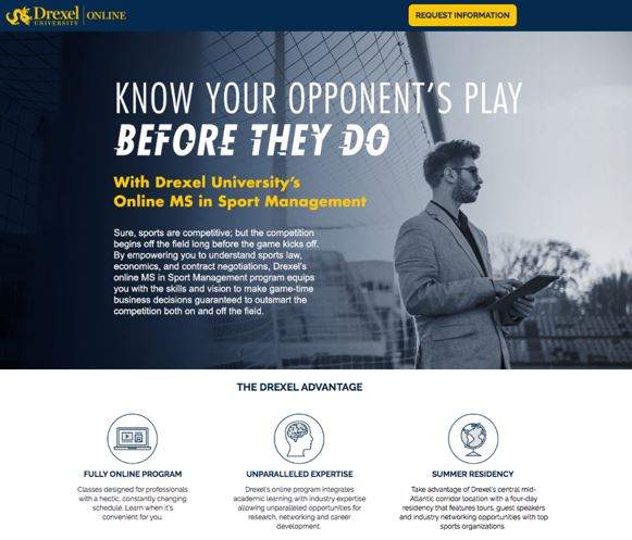 As part of a site-wide re-brand of online graduate programs, I conducted research, collaborated with students, alumni and faculty, and crafted original copy targeting adult learners interested in succeeding in the business of sports.