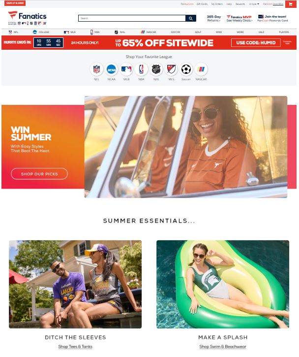 As part of Fanatics' summer promotions, the "Summer Fun" landing page was an opportunity for me to flex my creative muscles. I offered several options for headlines and sub-headlines relating to the themes we pushed.